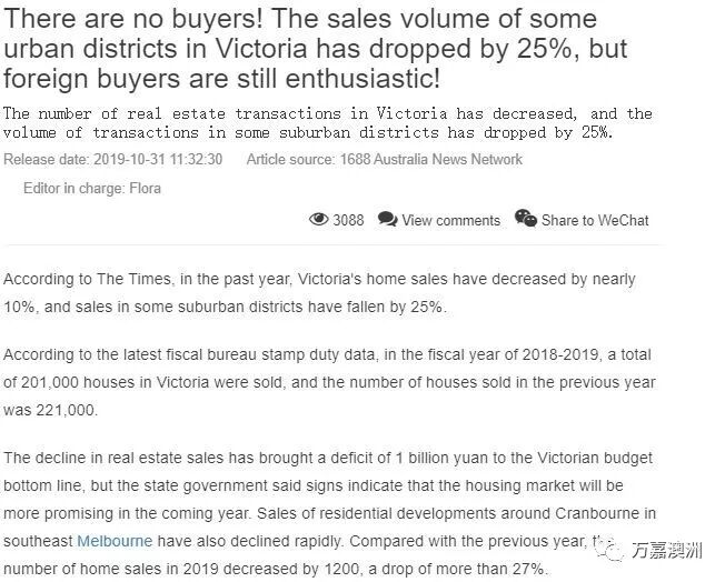 最新财政局印花税数据显示,2018-2019财年,维州共有20.1万套房屋转手出售,此前一年的被出售房屋数量为22.1万套。房地产销量的减少给维州预算案底线带来了10亿元的亏空,但州政府表示,迹象显示,未来一年的房市会更有希望。墨尔本东南区Cranbourne周边的发展城区房屋销量也迅猛减少。墨尔本一些房价最贵的城区有很多买家。 2018-2019财年,Toorak的房屋交易量几乎没有变化,而平均印花税则从超过18.1万元减少到不到14.9万元。 但2018-2019财年,海外买家对维州房地产的爱却没有冷却下来的迹象。在今年的预算案中,政府宣布对外国房地产业主征收更高的税。 涉及外国买家的房地产交易量增长了超过10%,达到了5800次,给维州政府带来了额外的3300万元收入。