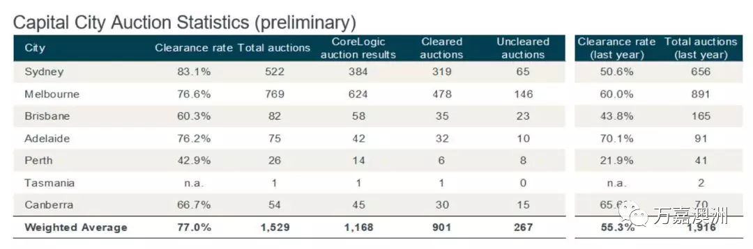 本周澳大利亚共有 1,529 套物业参加了周六的拍卖,初步清盘率为 77%。相比上周 1,615 套 拍卖减少了大约 100 套。去年同期共有 1,916 套物业进行了拍卖,得到的清盘率为 55.3%。在拍卖数量上,本周墨尔本在拍卖数量上基本与上周持平,清盘率上,上周的768套物业的最终拍卖结果为 74.4%。本周共有769套物业进行了拍卖,初步统计的结果为 76.6%。豪宅市场方面依然保持强劲,本周房屋的最高销售由 11 Kent Court, Toorak 保持,这套 3 房 3 卫的豪宅在外观上尽管没有什么亮点,但依然引来了多位买家竞拍。最终这套位于墨尔本最顶级富人区的豪宅以470 万澳币售出,比房东的心理预期高了40 万。