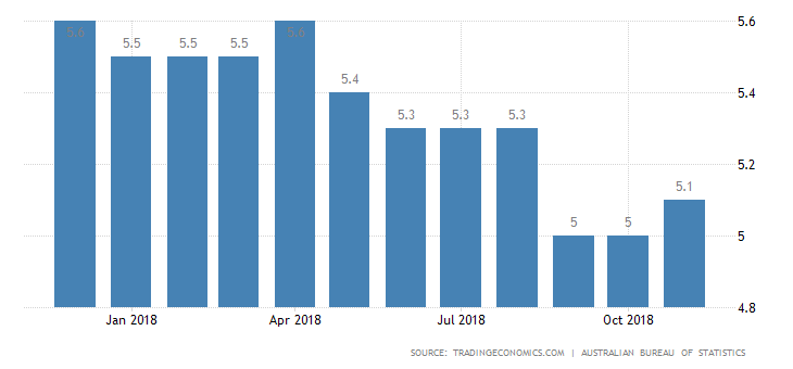 据澳大利亚统计局(ABS)最新数据显示,2018年11月澳大利亚失业率从5.2%,下降至5.1%。2018年11月份,就业人数增加了28,800人。全职就业人数增加19,300人,兼职人数增加9,500人。过去一年中,就业人数增加了295,700人(+2.4%),高于过去20年平均同比增长率(+2.0%)。2018年11月的月度工作时数增长了0.2%,而过去一年中增长了1.9%。这略高于20年平均同比增长率(+1.7%)。月度失业率上升不足0.1%,至8.4%,而澳洲劳动力市场未充分利用率(月度)维持稳定在13.5%。